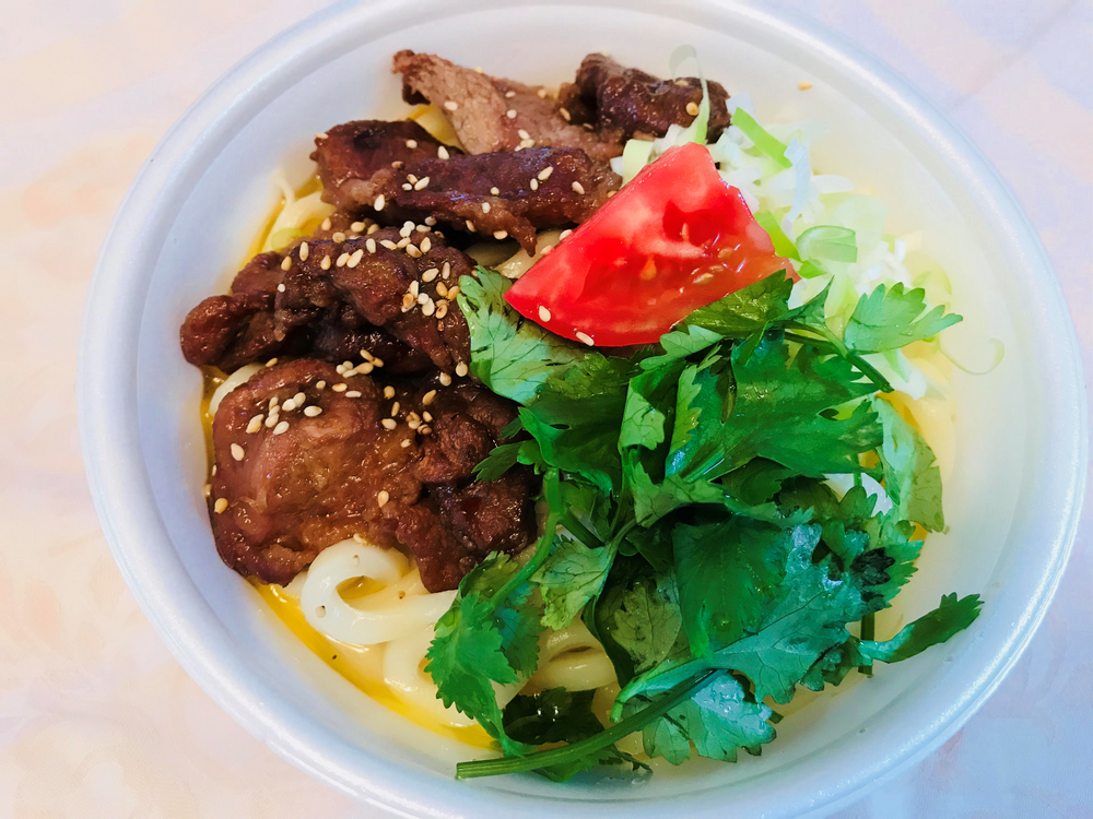 本番中国人が作る、台湾ではおなじみの牛肉麺。鶏と豚のあわせ白湯スープに入れた麺に、じっくり煮込んだ牛肉を乗せた、暑い夏にピッタリなスタミナ料理です。お好みで香菜(パクチー)をトッピング。辛党の方のために、辛さも選べるようにしています。更に今回は冷やし牛肉麺も!