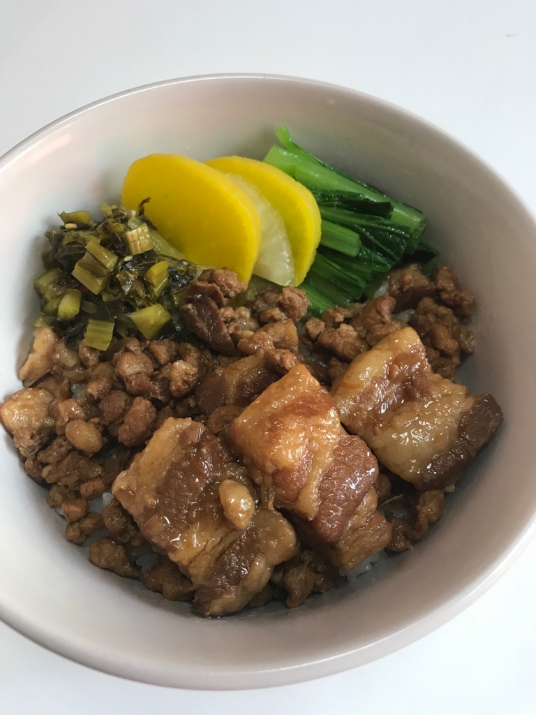 当店の自慢の「ルーロー飯」は横浜市丼ぶり大会「ガチ丼」で2位入賞さしました。一つひとつの具材を丁寧に手をかけた丼ぶりです。台湾の調味料、隠し味の台湾揚げネギ等たっぷり入れて風味豊かに仕上げました。